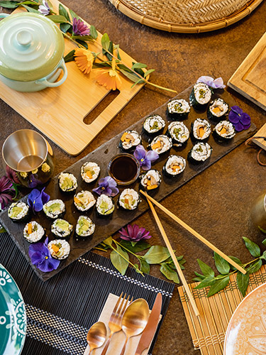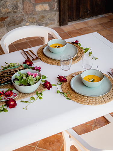 That’s why the food we offer is focused on seasonal plant-based foods, which mostly come from our kitchen garden. They are foods with high levels of vibration, cared for, harvested and cooked with Love so that they provide nourishment from their essence. Ours is a lively kitchen, full of colours, with wild flowers and plants and freshly harvested vegetables.